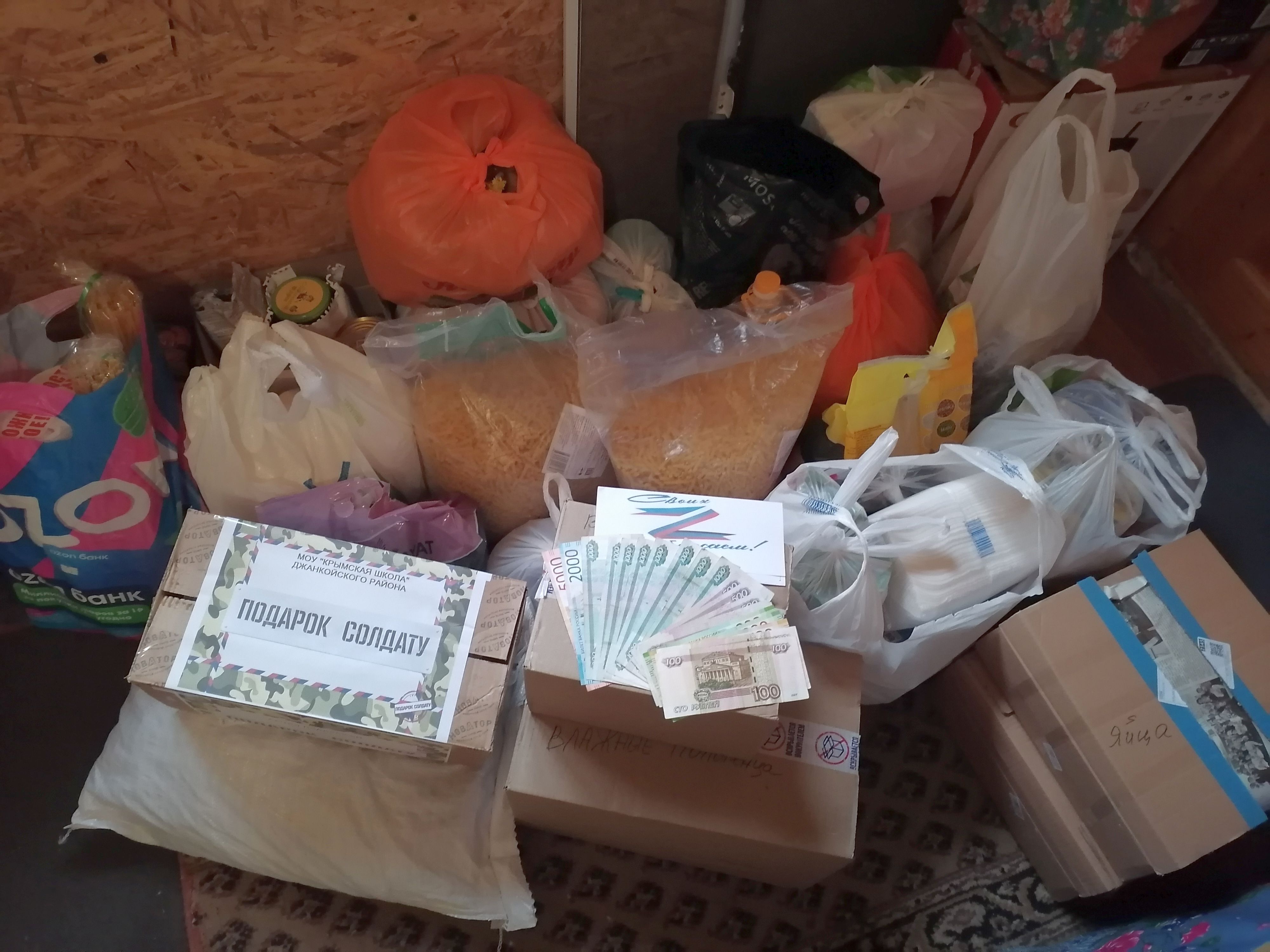 Мы доставили гуманитарную помощь, собранную по инициативе депутатского корпуса и жителей села Крымка, для наших военнослужащих. Благодаря общим усилиям, удалось собрать внушительный список необходимых вещей и продуктов: чай, кофе, каркаде, компот, варенье, конфеты, бублики, сухофрукты, печенье, мука, гречка, сахар, рис, горох, вермишель, лапша, перец молотый, кукуруза, горошек, лук, капуста, картошка, морковка, свекла, яйца, молоко, майонез, масло подсолнечное, сало соленое, смалец, консервы рыбные, влажные салфетки, полотенца, станки для бритья, носки, перчатки, замороженную ягоду, закатку.