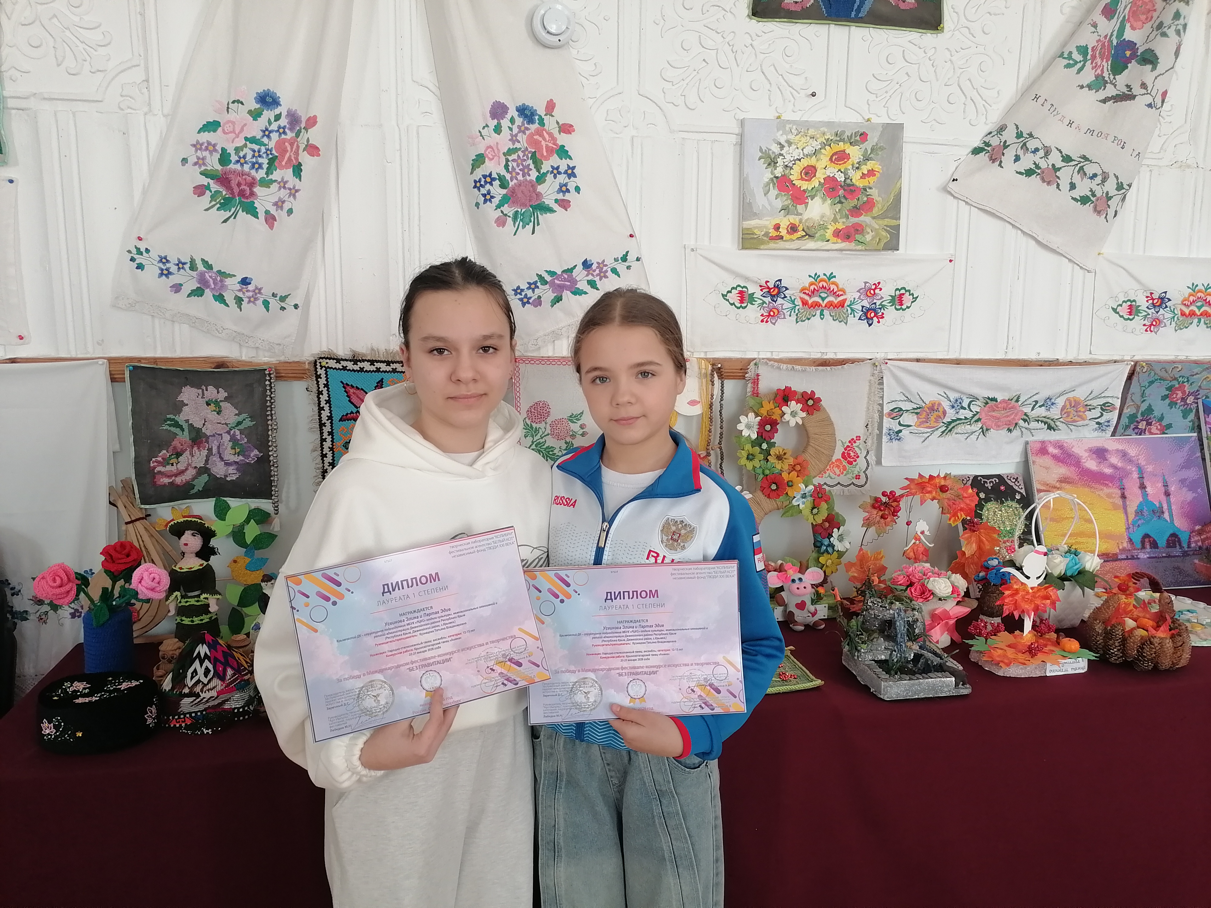 Крымковский ДК поздравляет Усеинову Элину и Партах Эдие с победным местом! В январе 2026 года в г.Санкт -Петербург, на Международном фестивале конкурсе искусства и творчества "Без гравитации", они стали Лауреатом 1 степени в номинации "Народно стилизованный танец". На конкурс они представили крымскотатарский танец "Амина".